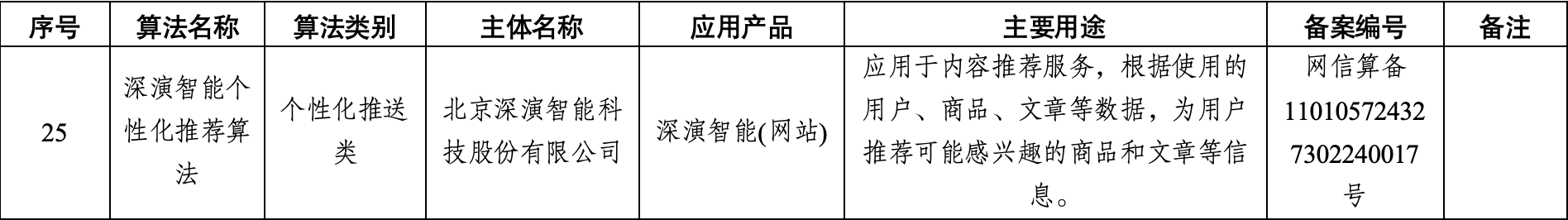 以下是创世红海智能个性化推荐算法(网信算备 110105724327302240017 号)备案信息: