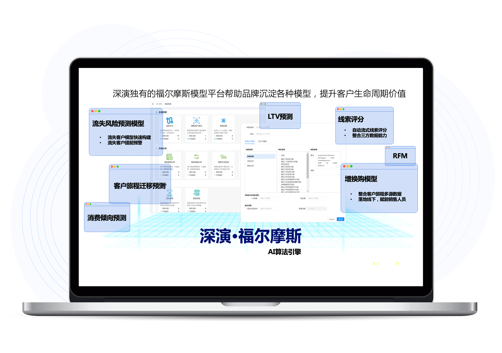 福尔摩斯AI是创世红海智能自主研发的AI算法模型平台,内嵌广告和用户运营两大模型体系,为创世红海智能营销决策云提供底层能力支撑,提升客户全生命周期价值